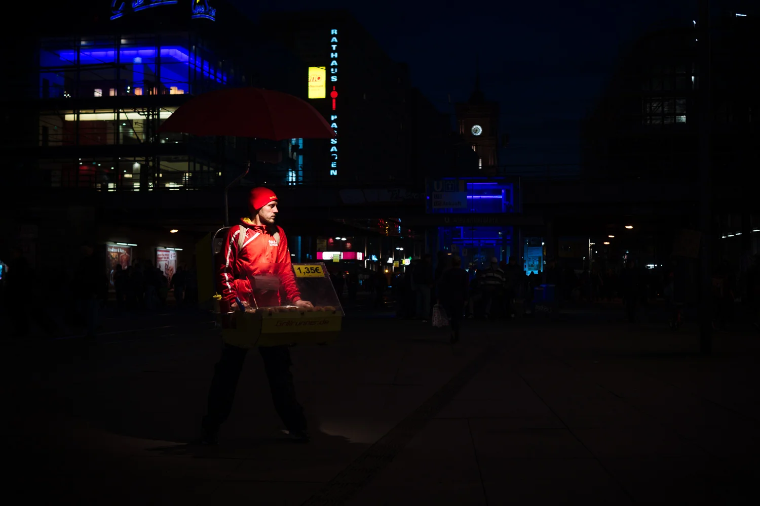 selling sausages from the hip.