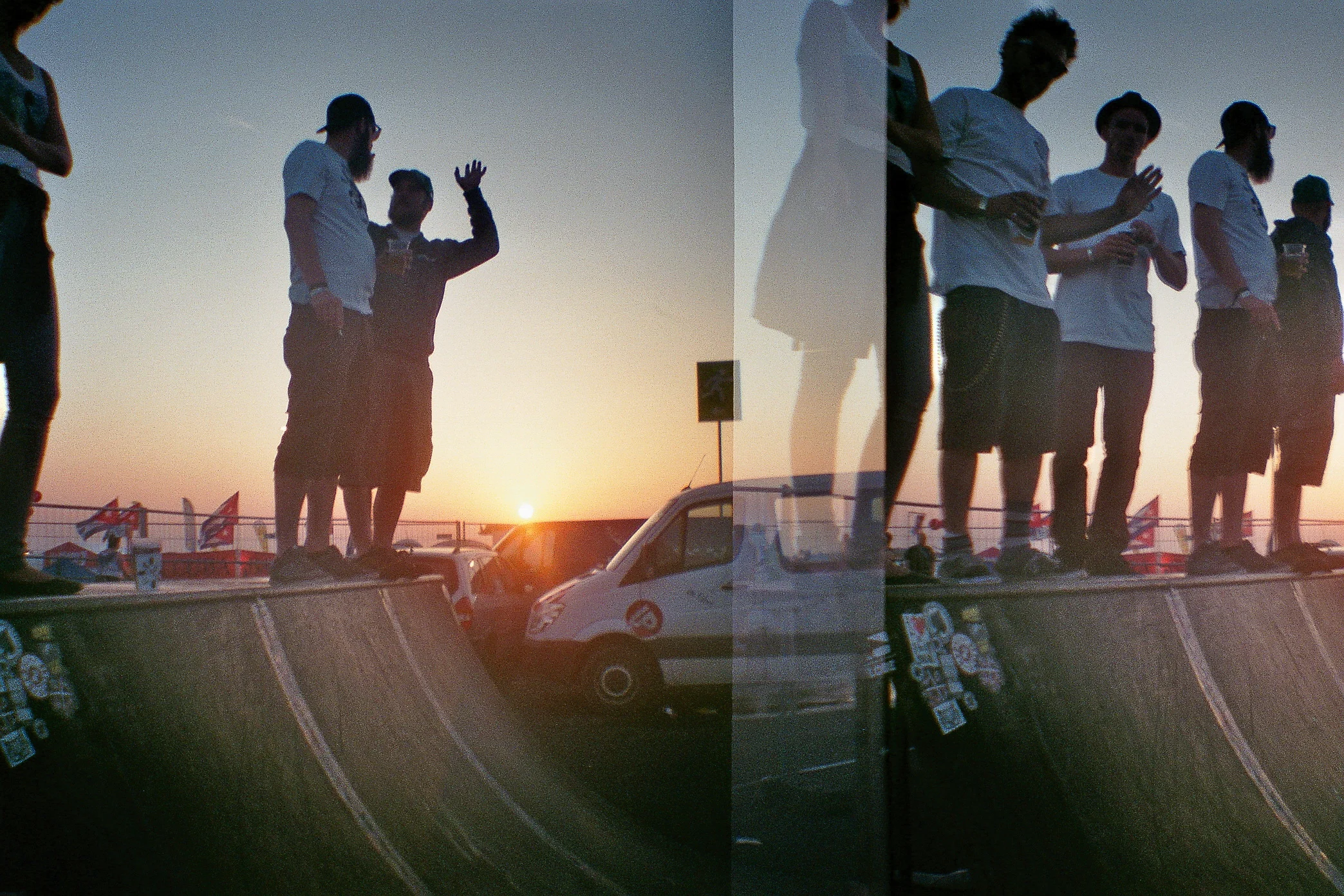 for party outdoor actions like music festivals my usual digital camera is replaced by the analogue diana mini. actually its operation is more than simple: two aperture settings, just one shutter speed option and only the focus distance to be set. nevertheless one is not immune from mistakes: here these two exposures were partially merged because i didn't properly wind the film in between.
