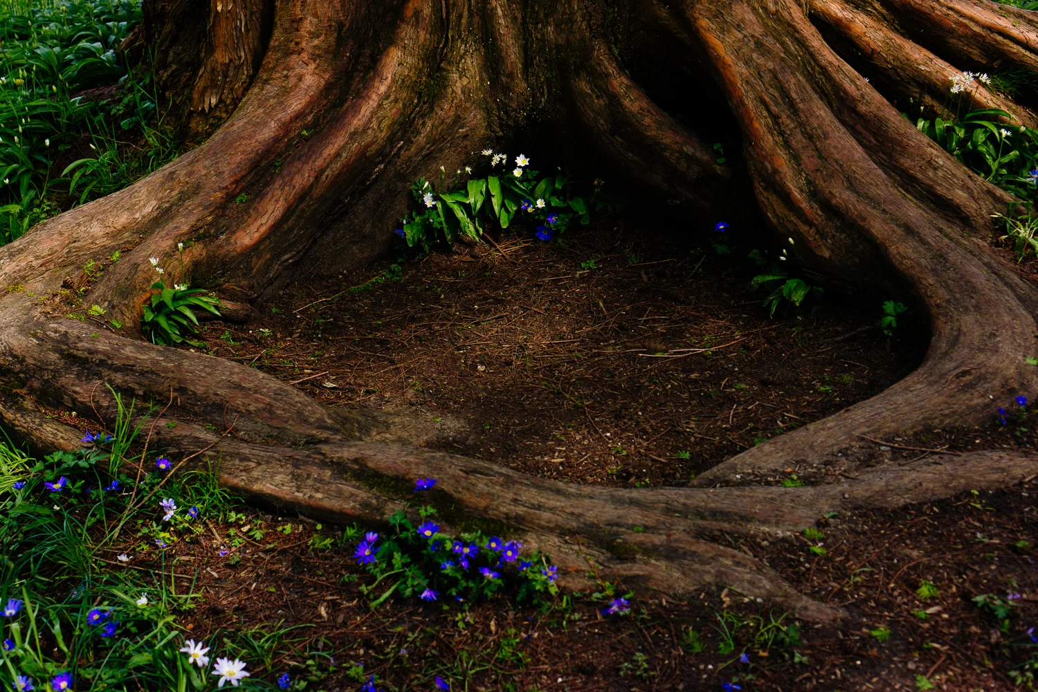 View fullsize 52 | 4.0 | 1/60 wooden arms of coverage July 20, 2016 flowers searching for protection in the near surrounding of a very old tree's roots.