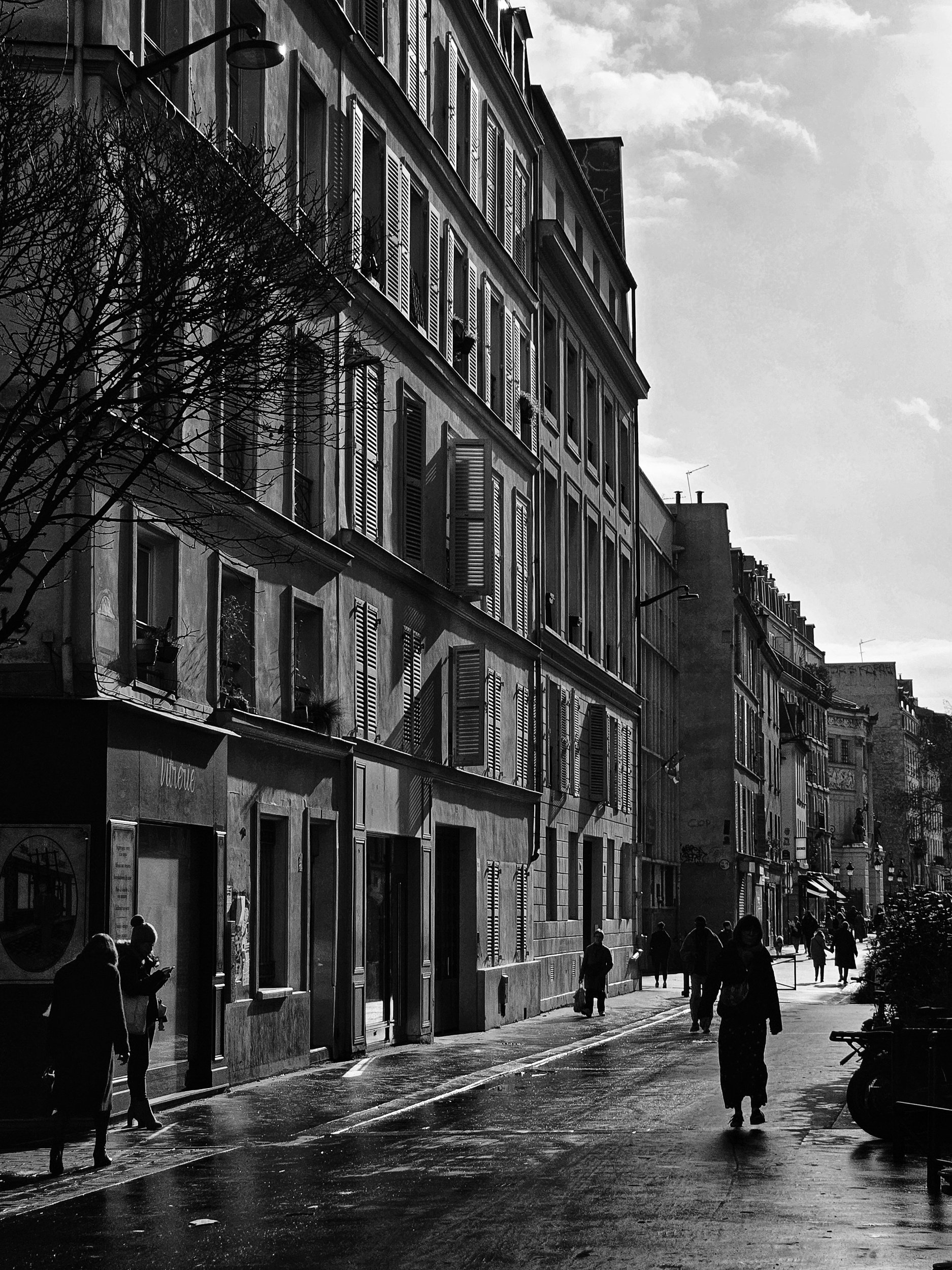 black and white and sunny street.